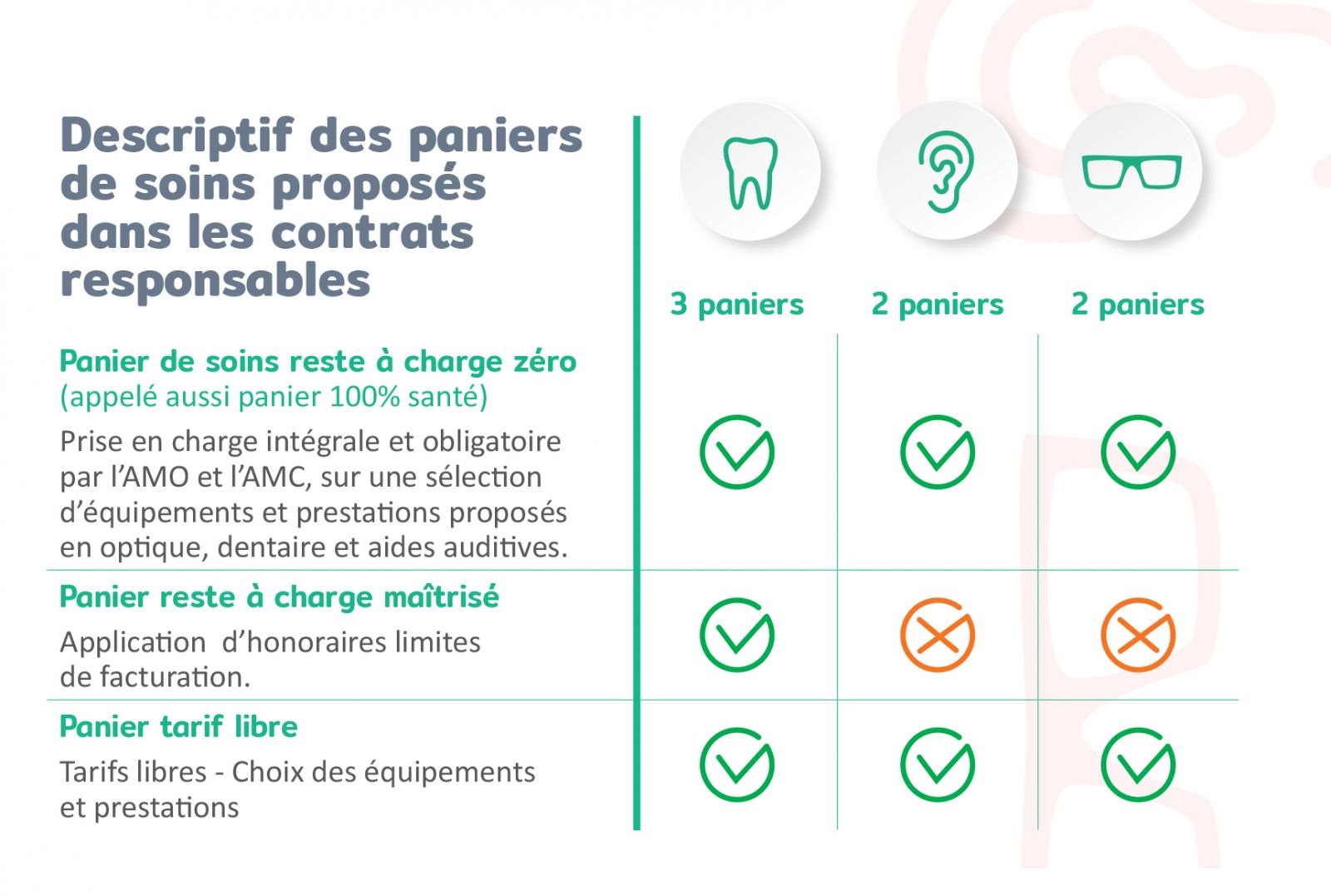 - Pour bénéficier de la prise en charge à 100% en dentaire, optique et audiologie, les personnes devront disposer d’un contrat santé responsable 100% conforme à la réforme.