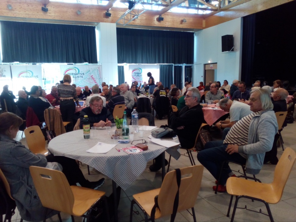 Sur le Thème « Ils veulent privatiser la Sécu, que fait-on ? », un atelier de travail composé de 10 tables rondes et d’une centaine de personnes était animé par Bernard TEPER. Autour de ces tables, diverses propositions écrites ont engendré des débats. A partir de ces travaux, Bernard TEPER a proposé aux participants d’écrire individuellement une proposition concrète à mener au niveau de leurs instances d’origine.