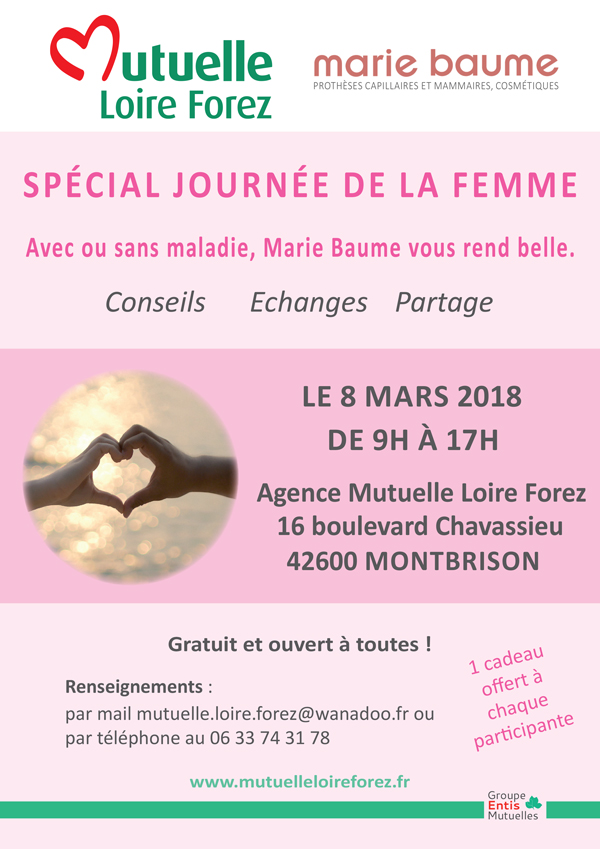 A l'occasion de la journée de la femme, votre mutuelle vous invite à l'agence de Montbrison pour un moment d'échange avec notre partenaire Marie Baume.